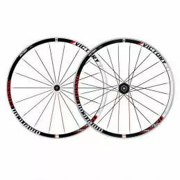 Aros: Victory 24mm Aluminum Clincher 700c. 24 radios radiales delanteros 28 radios 3-Cross traseros.